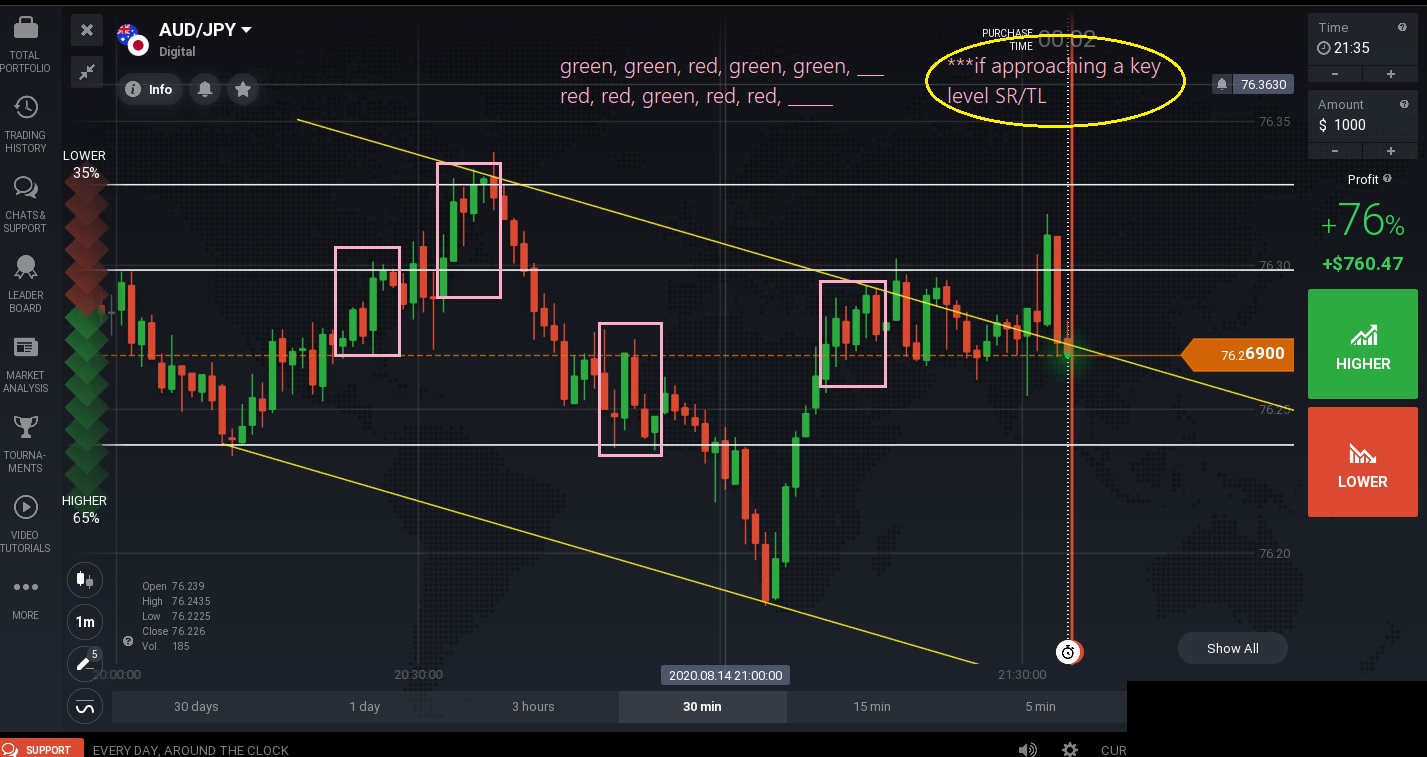 1-minute (second) Binary Options Strategy: 14 of 18 wins